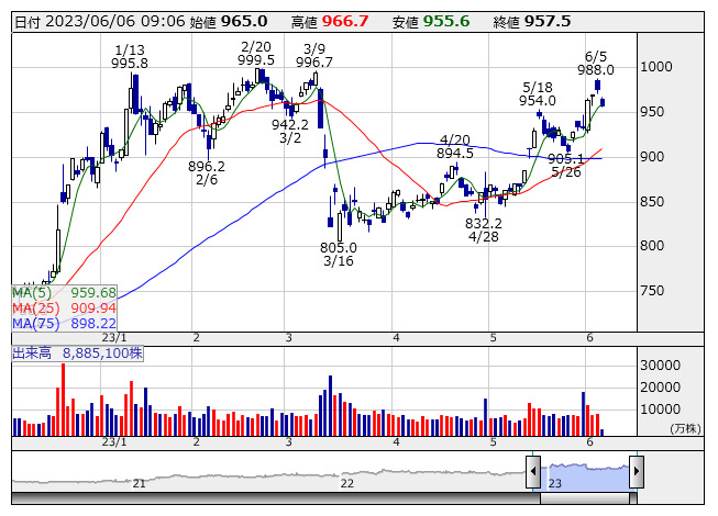 23. <7203> トヨタ 東証P 919 2022.5 ( -0.3 ) 日経225・JPX日経400採用