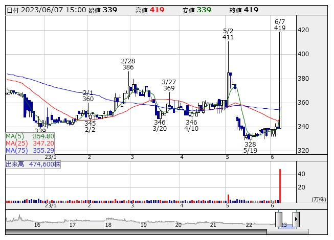 コラボス <日足> 「株探」多機能チャートより個別ではコラボス<3908>、フィーチャ<4052>、マーキュリーリアルテックイノベーター<5025>、キューブ<7112>、フューチャーリンクネットワーク<9241>がストップ高。サークレイス<5029>、Recovery International<9214>は一時ストップ高と値を飛ばした。ユナイテッド<2497>、クリアル<2998>、BRUNO<3140>、バルニバービ<3418>、アルファクス・フード・システム<3814>など35銘柄は年初来高値を更新。サマンサタバサジャパンリミテッド<7829>、カラダノート<4014>、AIAIグループ<6557>、イード<6038>、Waqoo<4937>は値上がり率上位に買われた。
