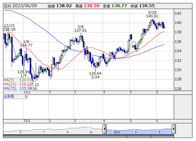 2023年06月10日03時23分 【通貨】NY為替:ドル・円、NY午後は139円30銭前後の推移で変わらず 米ドル/円 <日足> 「株探」多機能チャートより 9日午後のニューヨーク外為市場で、ドル・円は139円28銭から139円40銭で推移し、変わらない。ユーロ・ドルは1.0744ドルから1.0752ドルで推移、ユーロ・円は149円71銭から149円86銭で推移し、これも変わらない。 《KK》 提供:フィスコ