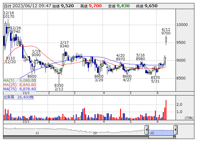 2023年06月12日09時48分 【材料】ソフトウェア大幅続伸、第2四半期営業益30%増で通期計画進捗率65%超 ソフトウェア <日足> 「株探」多機能チャートより ソフトウェア・サービス<3733>が大幅続伸し、年初来高値を更新した。同社は9日取引終了後、23年10月期第2四半期累計(22年11月~23年4月)の連結決算を発表。営業利益は前年同期比29.8%増の35億6800万円となり、通期計画54億3900万円に対する進捗率が65.6%となっていることが好感されているようだ。 売上高は同26.9%増の167億6500万円で着地。電子カルテシステムをはじめとする医療情報システムの開発・販売・導入・保守を中心に事業展開し、顧客満足度の向上に努めたことなどが奏功した。なお、通期業績予想については従来計画を据え置いている。 出所:MINKABU PRESS