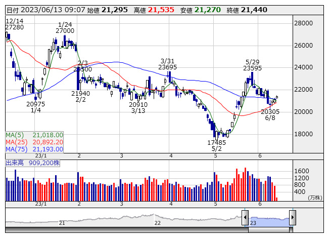 6857>は4連騰で上場来高値を更新するなど半導体製造装置関連の物色人気が際立つ。前日の米国株市場では、FOMC開催を前にFRBによる政策金利引き上げが見送られるとの思惑からグロース(成長)株に買いが向かい、特に半導体関連株への買いが目立った。インテル<