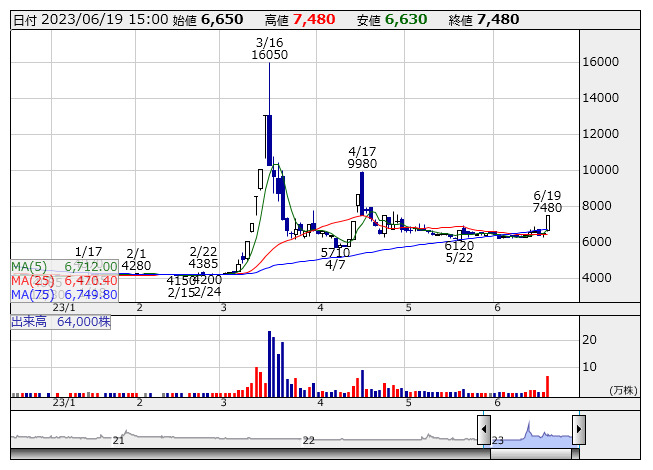 大谷工業 <日足> 「株探」多機能チャートより個別では大谷工業<5939>、タクミナ<6322>、ぷらっとホーム<6836>、ヘリオス テクノ ホールディング<6927>がストップ高。CSSホールディングス<2304>、フレンドリー<8209>、光世証券<8617>は一時ストップ高と値を飛ばした。アクシーズ<1381>、美樹工業<1718>、オーテック<1736>、三井住建道路<1776>、田辺工業<1828>など131銘柄は年初来高値を更新。NITTAN<6493>、アルファ<3434>、石垣食品<2901>、細谷火工<4274>、エヌエフホールディングス<6864>は値上がり率上位に買われた。