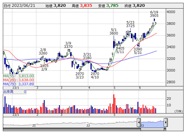 発行済み株式数(自社株を除く)の8.47%にあたる300万株(金額で50億円)を上限に自社株買いを実施する。買い付け期間は6月21日から24年3月29日まで。うち170万株を6月21日朝の東証の自己株式立会外買付取引「ToSTNeT-3」で取得する。