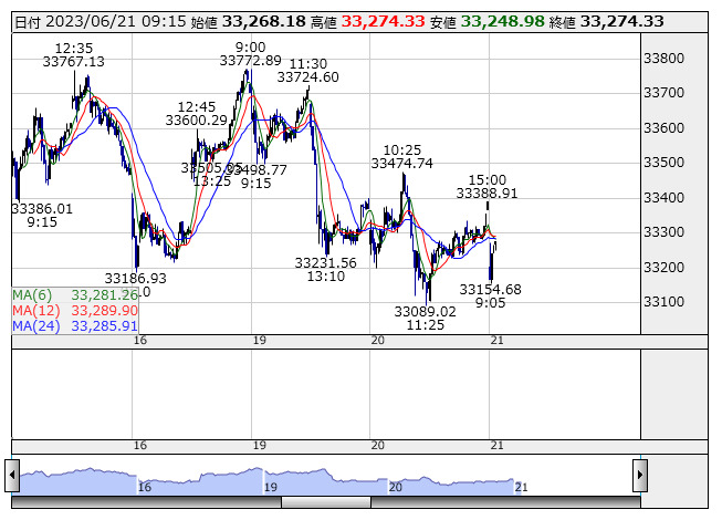 日経平均 <5分足> 売買代金 「株探」多機能チャートより個別ではiシェアーズ米国債1-3年ETF <2620> 、トップシェアインデックス(ネットリターン)ETN <2072> が新高値。