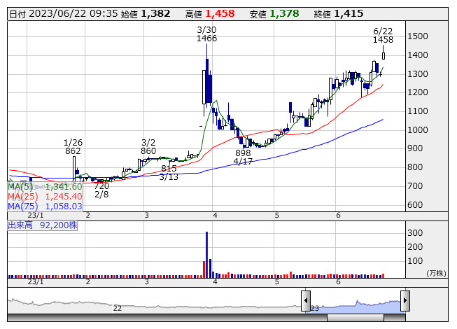 大幅に3日ぶり反発。自社が提供する製造現場DX支援ツール「HiConnex」が経済産業省の「IT導入補助金2023」対象ツールに認定されたと発表している。企業がHiConnexを導入する際、最大2年分の費用の半額(最大450万円)の補助金を受けることが可能になる。HiConnexは、生産現場のデータをリアルタイムで収集し、稼働状況・ロスの要因分析を見える化して品質不良や停止時間の削減、作業標準化に役立てるクラウドサービス。