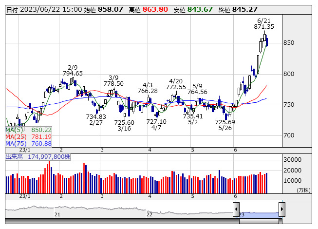 【市況】マザーズ先物テクニカルポイント(22日大引け)