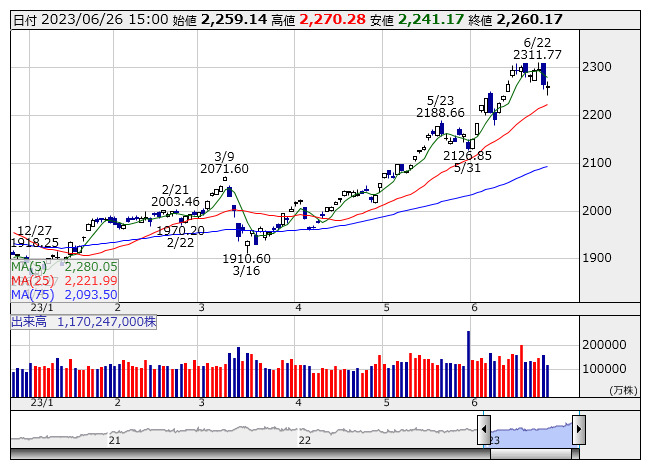 TOPIX <日足> 「株探」多機能チャートより2394.97ポイント ボリンジャーバンド3σ