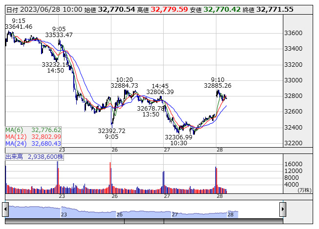 【市況】10時の日経平均は229円高の3万2768円、東エレクが26.43円押し上げ