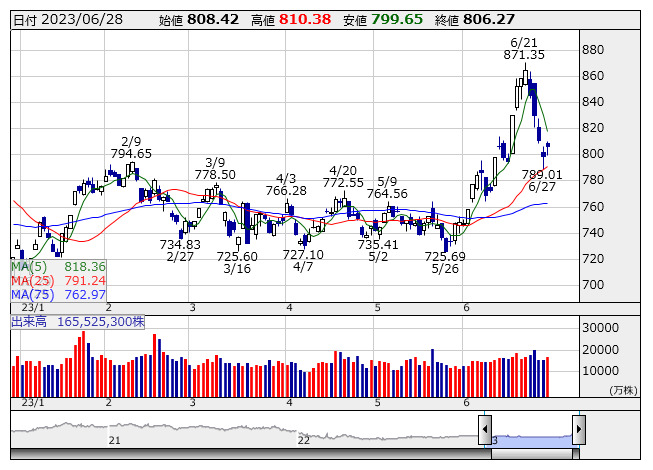 748.50ポイント 一目均衡表・先行スパン2(雲上限)