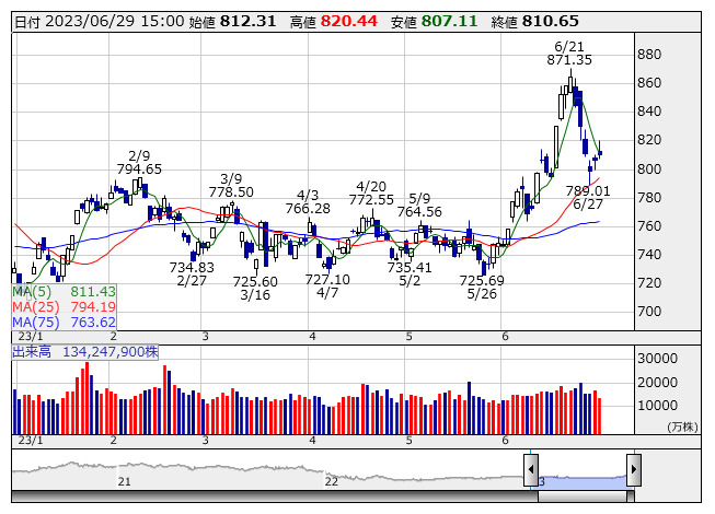 748.50ポイント 一目均衡表・先行スパン2(雲上限)