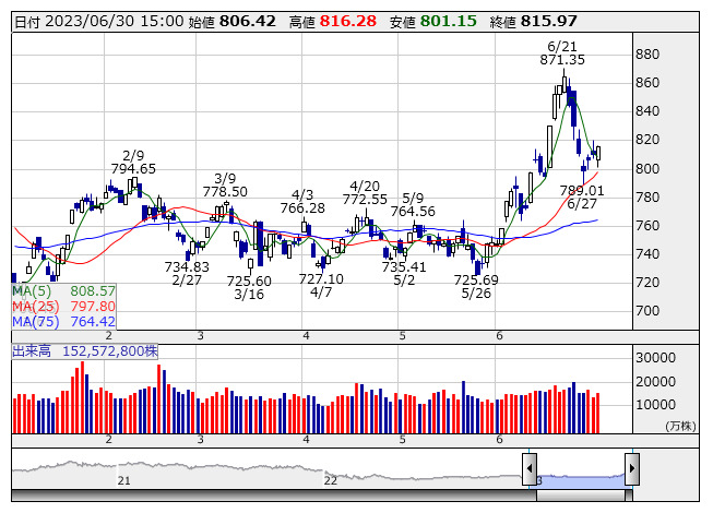 744.50ポイント 一目均衡表・先行スパン1(雲上限)