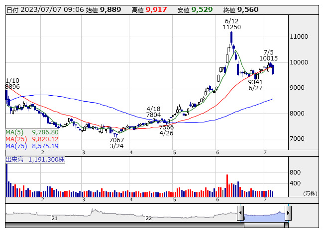 5. <4894> クオリプス 東証G 2,487 2497 ( +4.8 ) 2023年のIPO関連