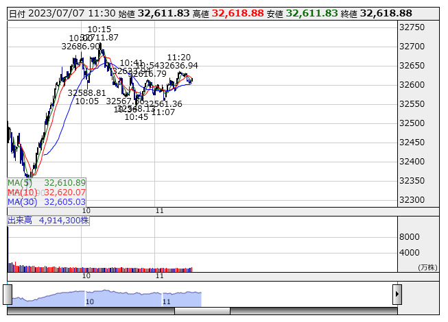 【市況】日経平均7日前引け=4日続落、154円安の3万2618円