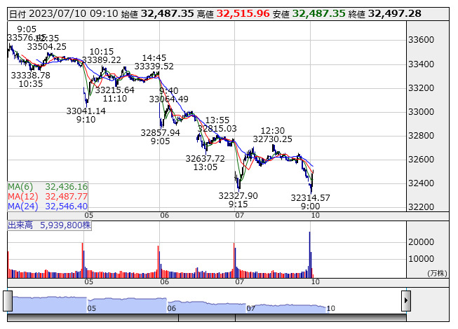 2023年07月10日09時11分 【市況】日経平均の上げ幅が100円突破 日経平均 <5分足> 「株探」多機能チャートより 日経平均株価の上げ幅が100円を突破。9時10分現在、127.54円高の3万2515.96円まで上昇している。 株探ニュース