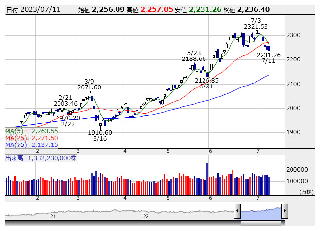 2023年07月12日08時46分 【市況】TOPIX先物:12日寄り付き=9ポイント高、2246ポイント TOPIX <日足> 「株探」多機能チャートより 12日8時45分、TOPIX先物期近2023年9月限は前日清算値比9ポイント高の2246ポイントで寄り付いた。前日のTOPIXの現物終値2236.4ポイントに対しては9.60ポイント高。夜間取引の終値2243ポイントに対しては3ポイント高となっている。 株探ニュース