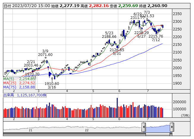 2202.75ポイント 一目均衡表・先行スパン1(雲上限)