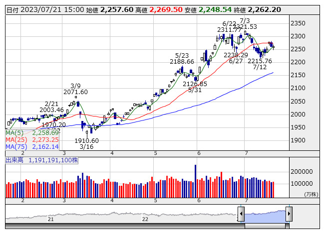 2023年07月21日15時17分 【市況】TOPIX先物:21日清算値=変わらず、2258.5ポイント TOPIX <日足> 「株探」多機能チャートより 21日15時15分、TOPIX先物期近2023年9月限は前日清算値比変わらずの2258.5ポイントで取引を終えた。出来高は4万8437枚だった。この日のTOPIXの現物終値2262.2ポイントに対しては3.7ポイント安。 株探ニュース