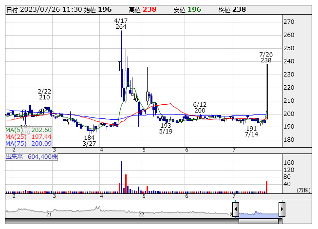 【材料】前場のランキング【値上がり率】 (7月26日)