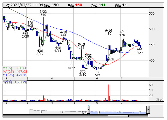 エアクロ <日足> 「株探」多機能チャートより新サービスは、月額制ファッションレンタルサービス「airCloset(エアークローゼット)」の新たなラインアップとなる都度課金型サービスで、秋の第1弾以降サービスの順次拡大を予定している。また、サービス開始に先駆け、7月27日からティザーサイトを公開し、事前登録受付を開始した。なお、24年6月期業績への影響は精査中としている。