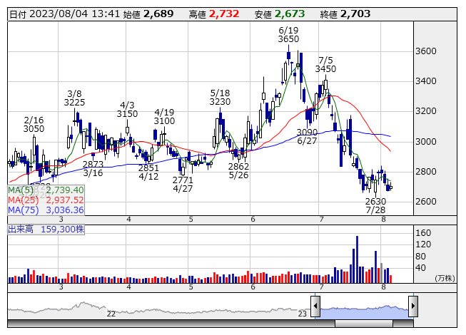 2023/07/28 15.44% → 3.41% 1,415,821 2023/08/04 13:39