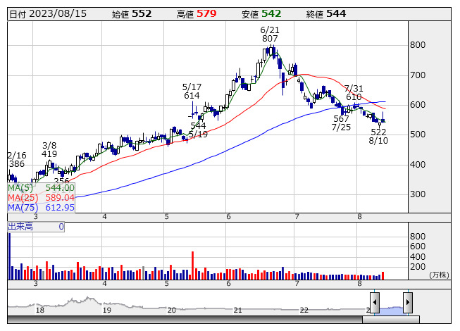 シェアテク <日足> 「株探」多機能チャートより