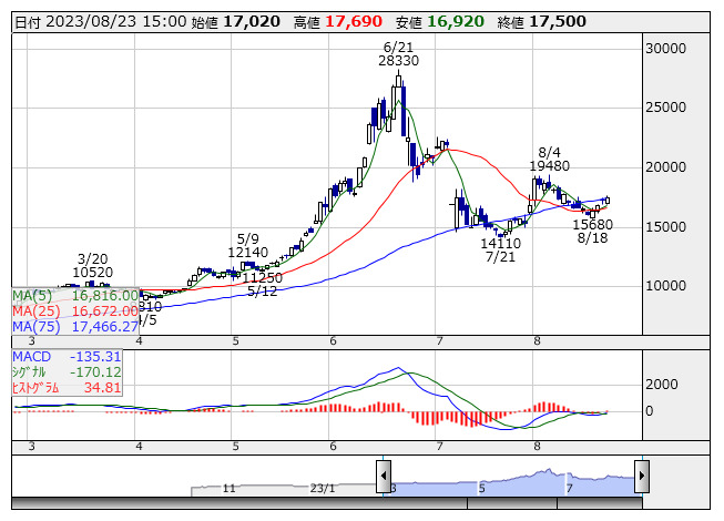 <6526> ソシオネクスト 17500 +200 ( +1.2%) -135.3
