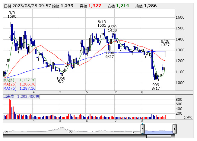 大幅に6日続伸。複数メディアが「経済産業省は電気自動車(EV)向けの充電設備を巡り、2030年までに15万としていた設置目標を倍増させて30万口に引き上げる新指針を定める」と報じ、買い材料視されている。報道によると、「目標対象は、高速道路のサービスエリア(SA)や道の駅、商業施設など公共スペース。新目標は現在の設置数(約3万基)の10倍に相当する」とされ、EV充電サービスを手掛けるENECHANGEが関連銘柄として物色されている。