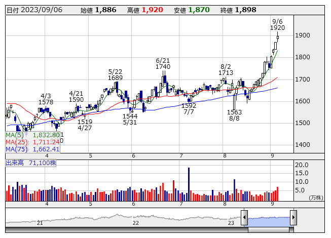 <8015> 豊田通商 5713 ( 6) 9,070 -1 ( 0.0%)