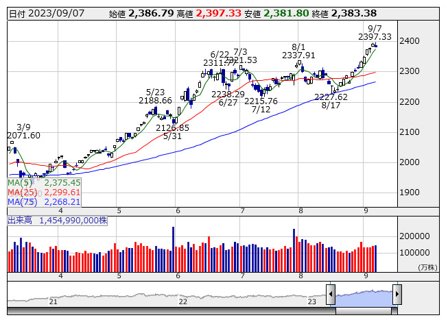 2378.60ポイント 5日移動平均