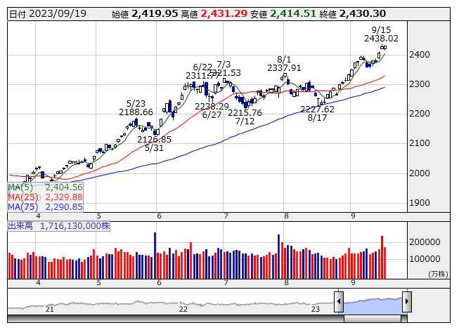 2393.90ポイント 5日移動平均