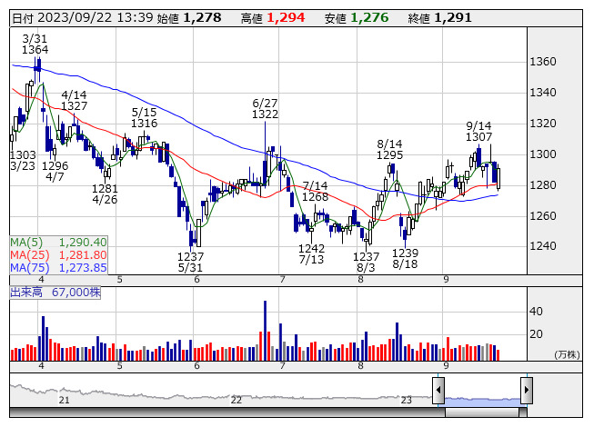 あさひ <日足> 「株探」多機能チャートより9月25日の決算発表銘柄(予定)