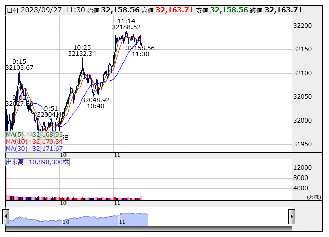 【市況】日経平均27日前引け=続落、151円安の3万2163円