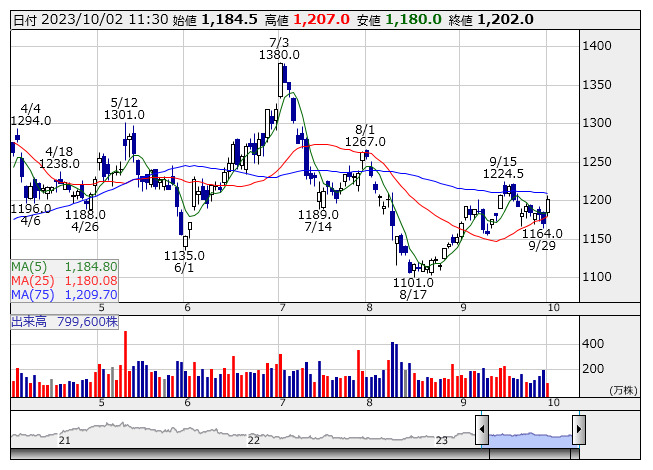 東海カ <日足> 「株探」多機能チャートより■財務省 : 10月2日受付