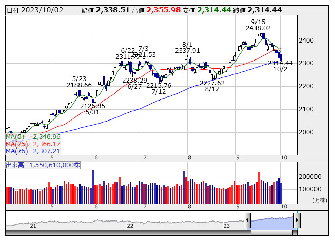 2276.25ポイント 一目均衡表・先行スパン2(雲上限)