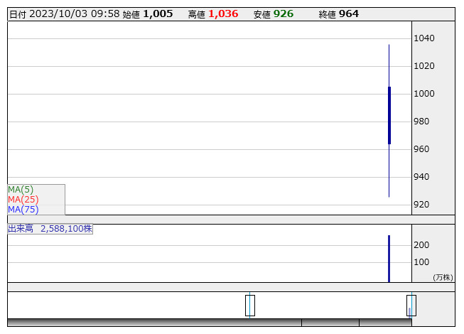 2023年10月03日09時56分 【材料】インシュアの初値は1005円、公開価格を24%上回る インシュア <日足> 「株探」多機能チャートより きょう東証スタンダード市場に新規上場したニッポンインシュア<5843>は、公開価格と同じ810円カイ気配でスタートし、その後も気配値を切り上げる展開となっていたが、午前9時45分に公開価格を195円(24.1%)上回る1005円で初値をつけた。 出所:MINKABU PRESS