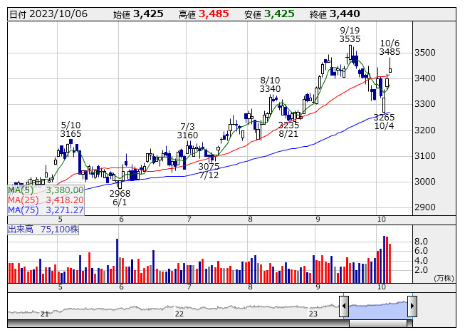 【特集】下値抵抗25日線に接近【上昇トレンド】銘柄 22社 <テクニカル特集> 10月6日版