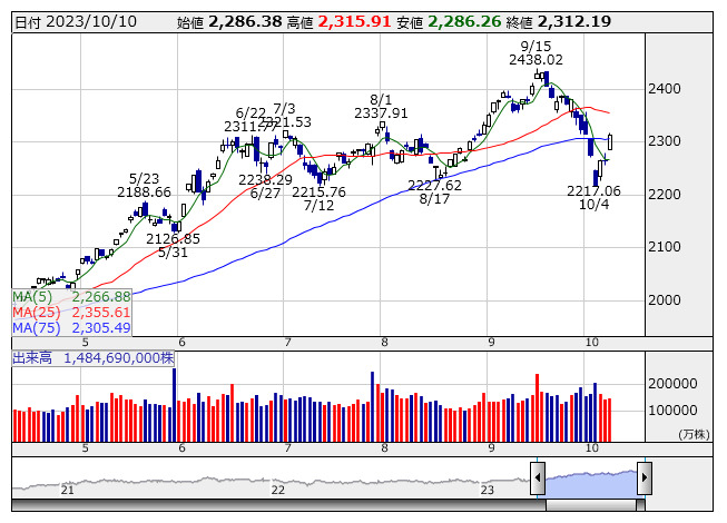 2312.19ポイント 10日TOPIX現物終値