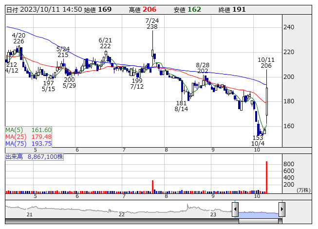 DWセラピ研 <日足> 「株探」多機能チャートより