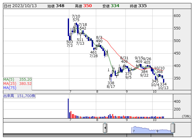 クシム <2345> 390 +34 ( +9.6%) 93,300 ( 3,648) 93,600 ( 3,650)