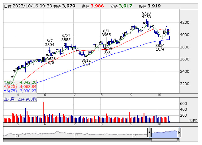 2023/10/09 6.11% → 5.24% 34,561,848 2023/10/16 09:36