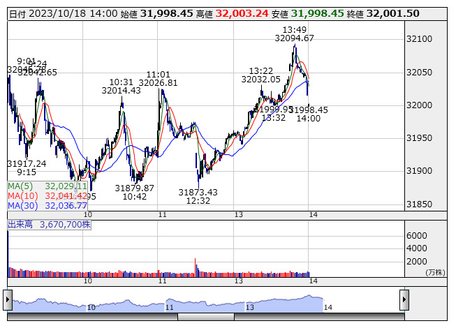 【市況】14時の日経平均は24円安の3万2015円、第一三共が18.78円押し下げ