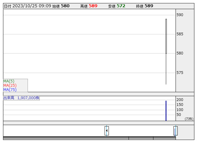 2023年10月25日09時08分 【材料】全保連の初値は580円、公開価格を3.3%下回る 全保連 <日足> 「株探」多機能チャートより きょう東証スタンダード市場に新規上場した全保連<5845>は、公開価格と同じ600円ウリ気配でスタートし、その後気配値を切り下げていたが、午前9時6分に公開価格を20円(3.3%)下回る580円で初値をつけた。 出所:MINKABU PRESS