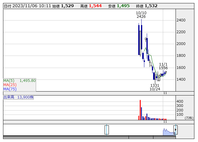 キャスター <日足> 「株探」多機能チャートよりキャスター<9331>は1日、定額リモートアシスタントサービス「My Assistant(マイアシスタント)」において、自社開発したタスク管理ツール「マイアシWeb」のβ版を11月1日に実装したことを発表した。