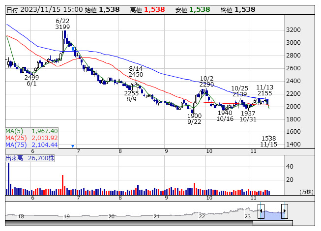 【材料】本日のランキング【値下がり率】 (11月15日)