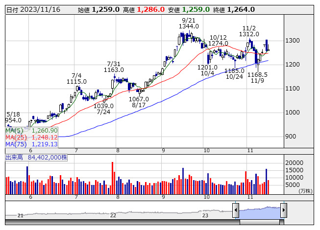 <2767> 円谷フィHD 4882 ( 41) 1,182 -23 ( -1.9%)