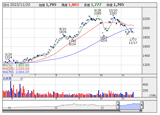 そのほか、旭有機材 <4216> やミナトHD <6862> 、オキサイド <6521> も買い気配を切り上げている。