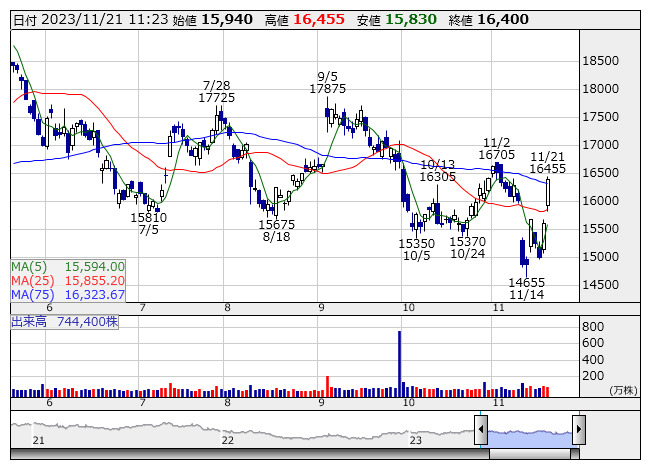 ニトリHD <日足> 「株探」多機能チャートより