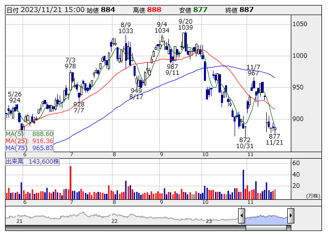 アイダ <日足> 「株探」多機能チャートより■財務省 : 11月21日受付