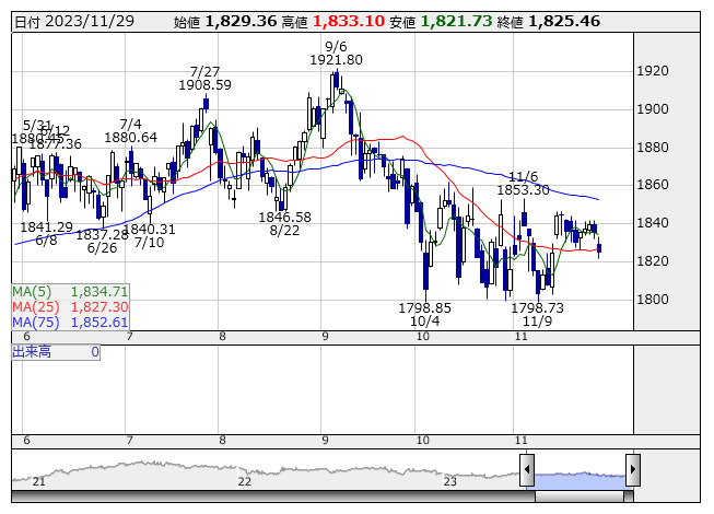 2023年11月30日08時47分 【市況】東証REIT指数先物:30日寄り付き=9ポイント安、1813ポイント REIT指数 <日足> 「株探」多機能チャートより 30日8時46分、東証REIT指数先物期近2023年12月限は前日清算値比9ポイント安の1813ポイントで寄り付いた。前日の東証REIT指数の現物終値1825.46ポイントに対しては12.46ポイント安。 株探ニュース
