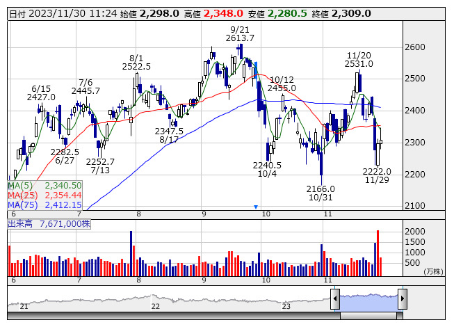 6902>は続伸。トヨタなど3社による2億5637万3400株の売出、並びに、オーバーアロットメントによる上限3845万5900株の売出を実施すると発表。売出価格は12月13日から18日までに決定。一方、発行済み株式数の4.17%にあたる1億2500万株を上限とする自社株買い、並びに、豊田自動織機とアイシンの株式一部売却方針を発表している。売出による需給悪化懸念はすでに織り込まれており、政策保有株売却による資産効率化を評価の流れにも。